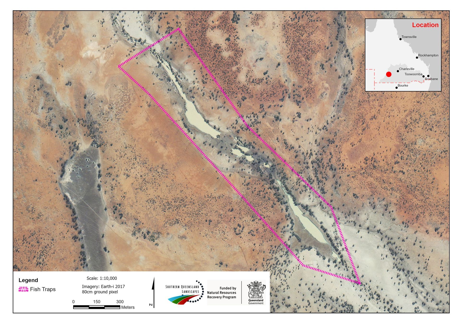 Southern Queensland Landscapes, through funding received from the Queensland Government's Natural Resources Recovery Program, is supporting this partnership by funding land management improvement works that will in part be completed by the Margany People. The works will include cool burning, water quality monitoring and pest management, which will improve landscape rehydration and soil health on surrounding grazing land, in turn protecting the river and fish trap site.